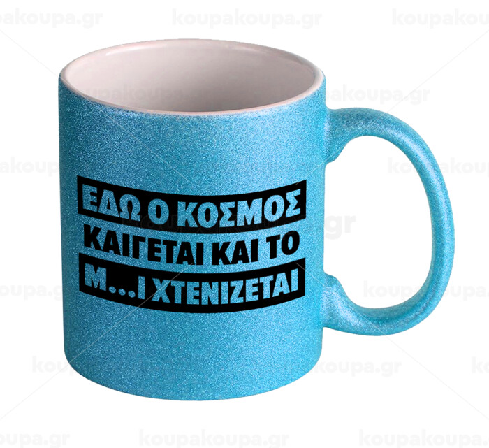 Εδώ ο κόσμος καίγεται και το Μ....Ι χτενίζεται, Κούπα Σιέλ Glitter που γυαλίζει, κεραμική, 330ml