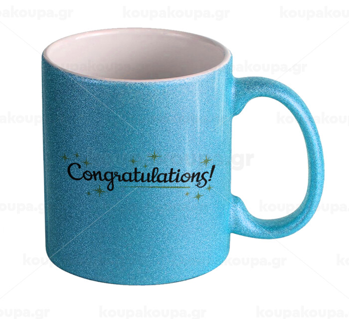 Congratulations, Κούπα Σιέλ Glitter που γυαλίζει, κεραμική, 330ml