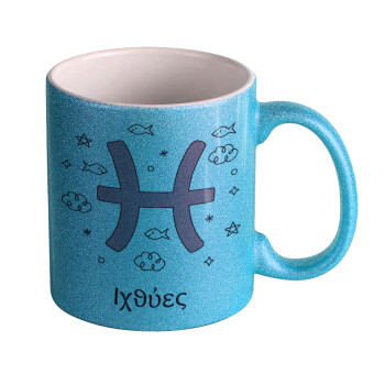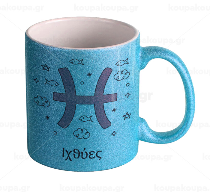 Ζώδια Ιχθύες, Κούπα Σιέλ Glitter που γυαλίζει, κεραμική, 330ml
