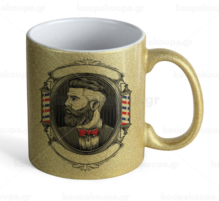 Barber shop, Κούπα Χρυσή Glitter που γυαλίζει, κεραμική, 330ml