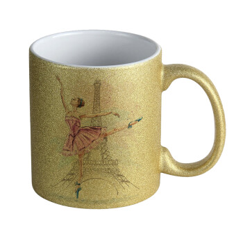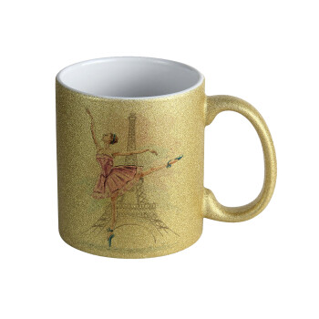 Ballerina in Paris, Κούπα Χρυσή Glitter που γυαλίζει, κεραμική, 330ml