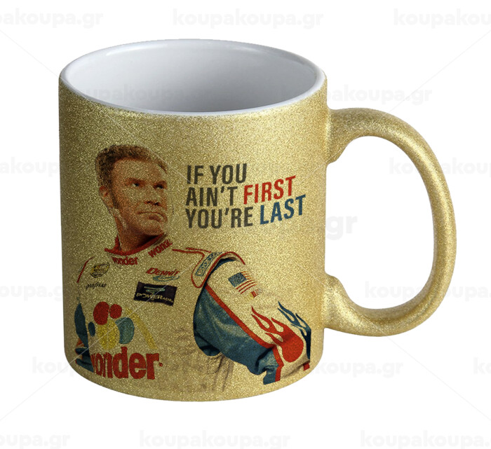 If You Ain't First You're Last Ricky Bobby, Talladega Nights, Κούπα Χρυσή Glitter που γυαλίζει, κεραμική, 330ml