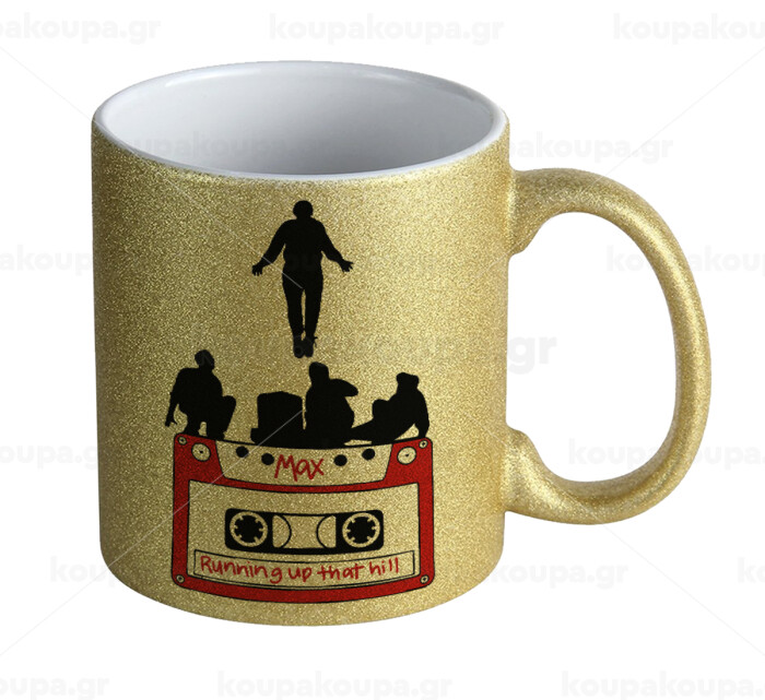 Running up that hill, Stranger Things, Κούπα Χρυσή Glitter που γυαλίζει, κεραμική, 330ml