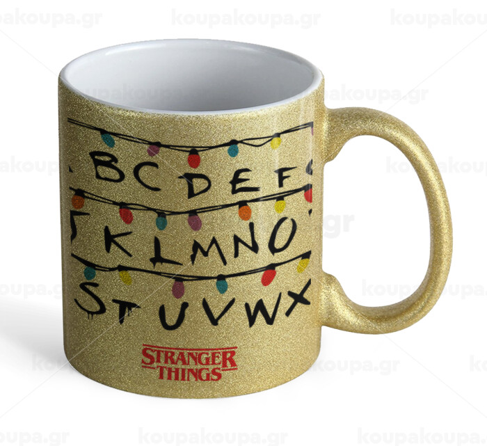 Stranger Things ABC, Κούπα Χρυσή Glitter που γυαλίζει, κεραμική, 330ml