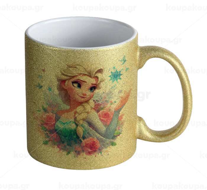 Elsa Princess, Κούπα Χρυσή Glitter που γυαλίζει, κεραμική, 330ml
