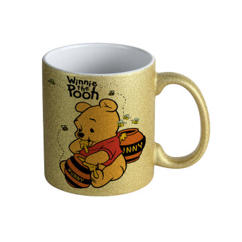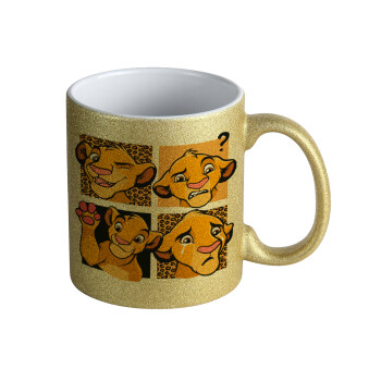 Lilo & Stitch Angel pink, Κούπα Χρυσή Glitter που γυαλίζει, κεραμική, 330ml
