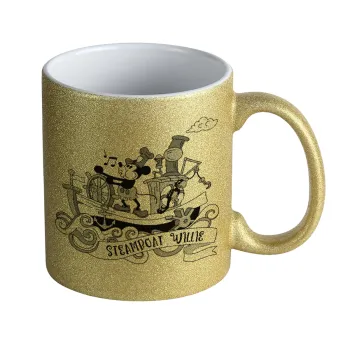 Mickey steamboat, Κούπα Χρυσή Glitter που γυαλίζει, κεραμική, 330ml