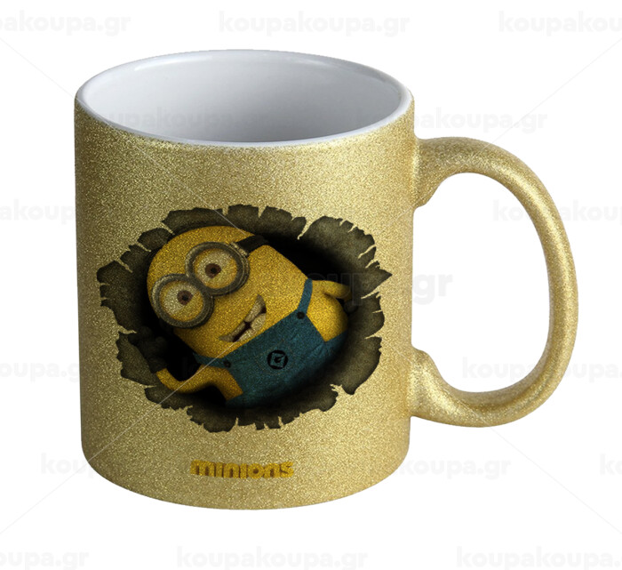 Minions hi, Κούπα Χρυσή Glitter που γυαλίζει, κεραμική, 330ml