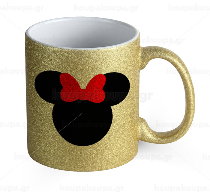 Minnie head, Κούπα Χρυσή Glitter που γυαλίζει, κεραμική, 330ml