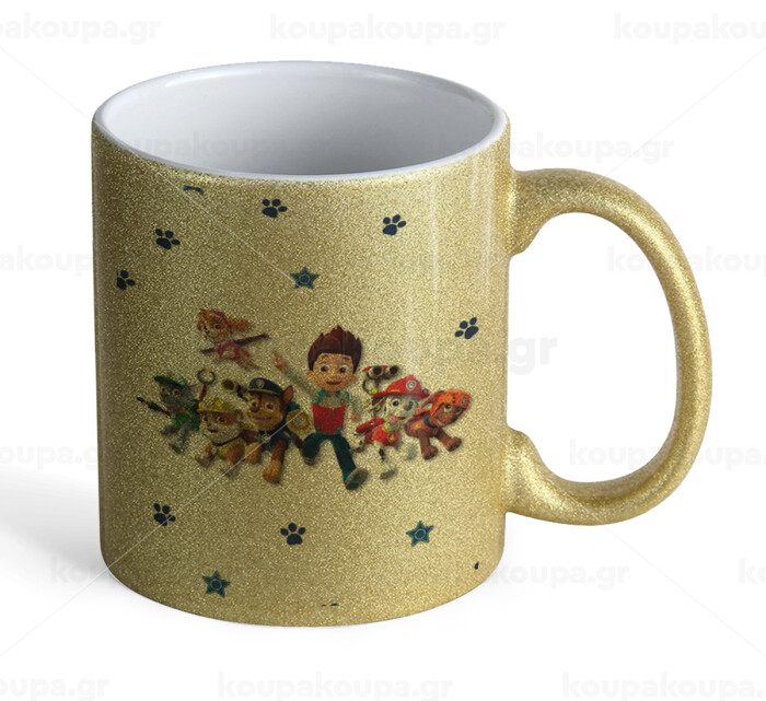 paw patrol, Κούπα Χρυσή Glitter που γυαλίζει, κεραμική, 330ml