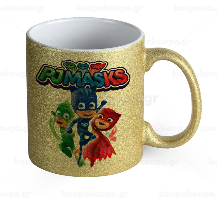 PJ masks, Κούπα Χρυσή Glitter που γυαλίζει, κεραμική, 330ml