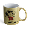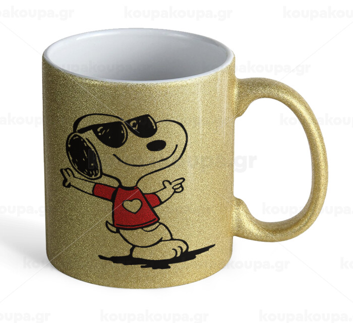 Snoopy καρδούλα, Κούπα Χρυσή Glitter που γυαλίζει, κεραμική, 330ml