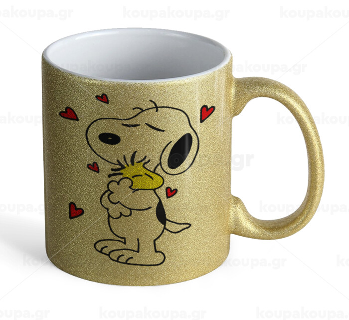 Snoopy Love, Κούπα Χρυσή Glitter που γυαλίζει, κεραμική, 330ml