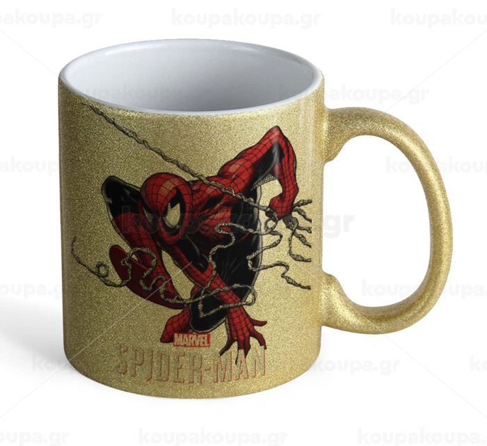 Spider-man, Κούπα Χρυσή Glitter που γυαλίζει, κεραμική, 330ml