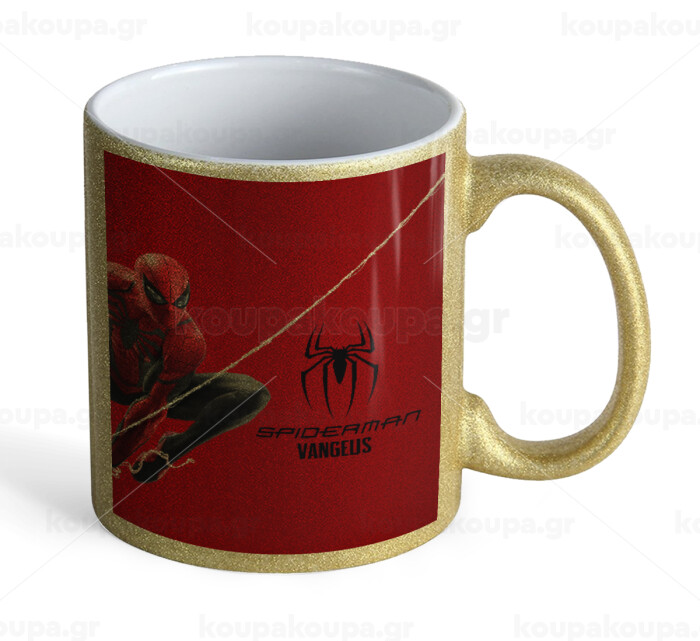 Spiderman, Κούπα Χρυσή Glitter που γυαλίζει, κεραμική, 330ml