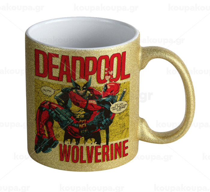 Superhero Deadpool Wolverine, Κούπα Χρυσή Glitter που γυαλίζει, κεραμική, 330ml