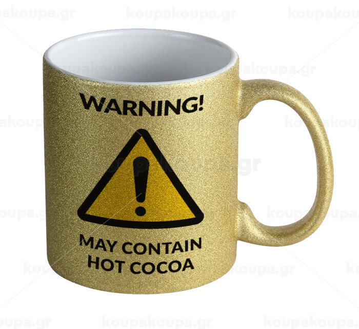 WARNING MAY CONTAIN HOT COCOA MUG PADDINGTON, Κούπα Χρυσή Glitter που γυαλίζει, κεραμική, 330ml
