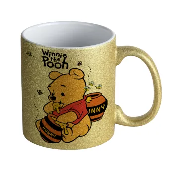 Γουίνι το Αρκουδάκι , Κούπα Χρυσή Glitter που γυαλίζει, κεραμική, 330ml