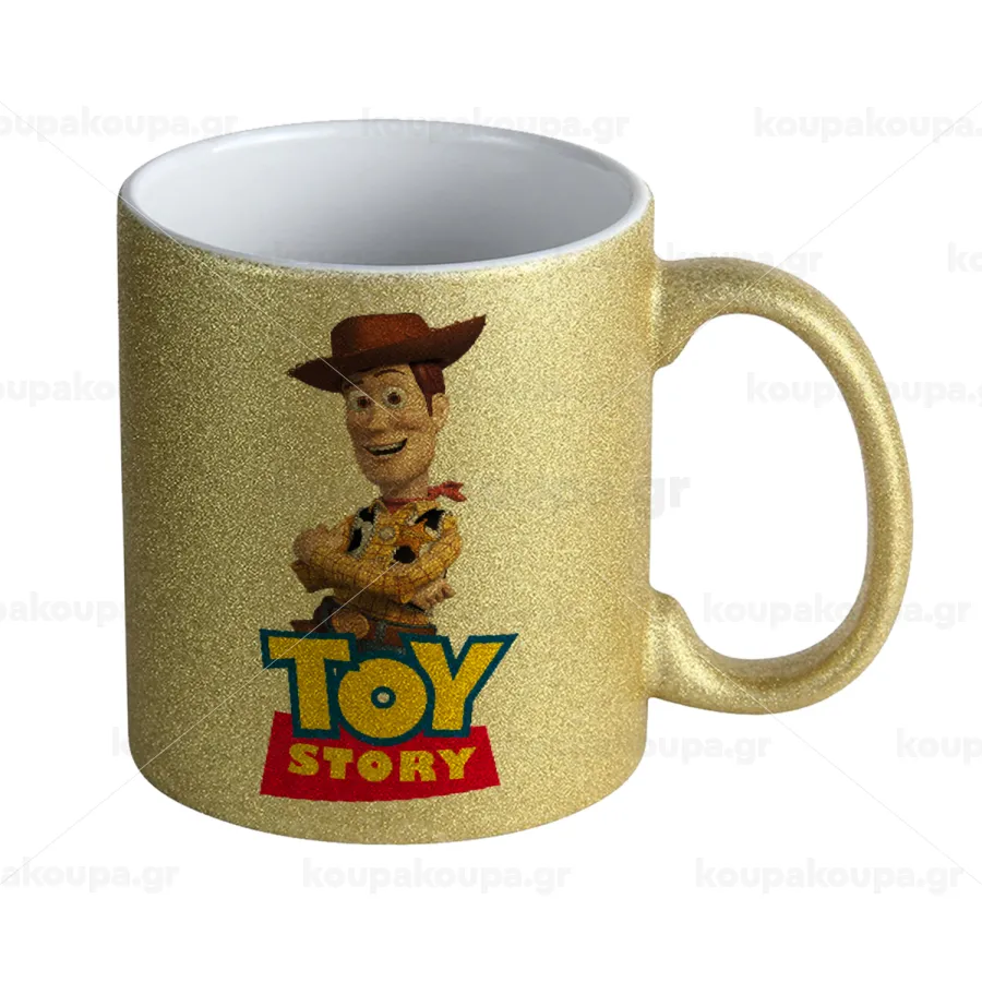 Woody cowboy, Κούπα Χρυσή Glitter που γυαλίζει, κεραμική, 330ml