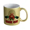 Yosemite Sam Back OFF, Κούπα Χρυσή Glitter που γυαλίζει, κεραμική, 330ml