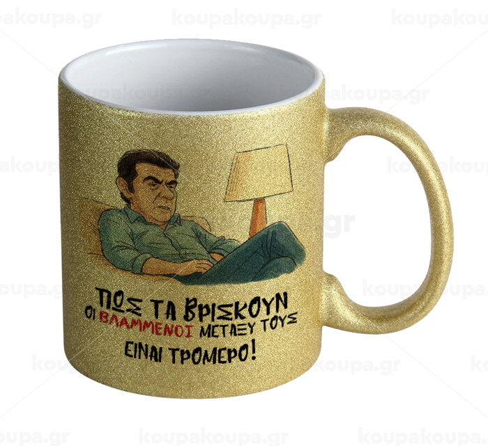 ΠΩΣ ΤΑ ΒΡΙΣΚΟΥΝ ΟΙ ΒΛΑ....ΝΟΙ ΜΕΤΑΞΥ ΤΟΥΣ, ΕΙΝΑΙ ΤΡΟΜΕΡΟ!!!, Κούπα Χρυσή Glitter που γυαλίζει, κεραμική, 330ml