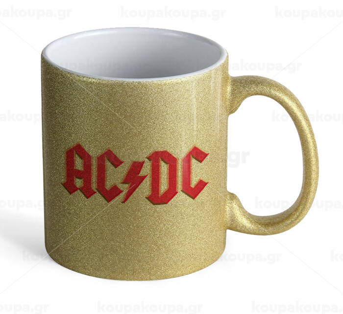 AC/DC, Κούπα Χρυσή Glitter που γυαλίζει, κεραμική, 330ml