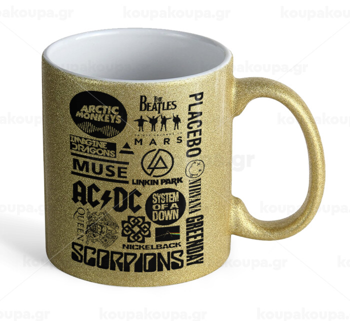 Best Rock Bands Collection, Κούπα Χρυσή Glitter που γυαλίζει, κεραμική, 330ml