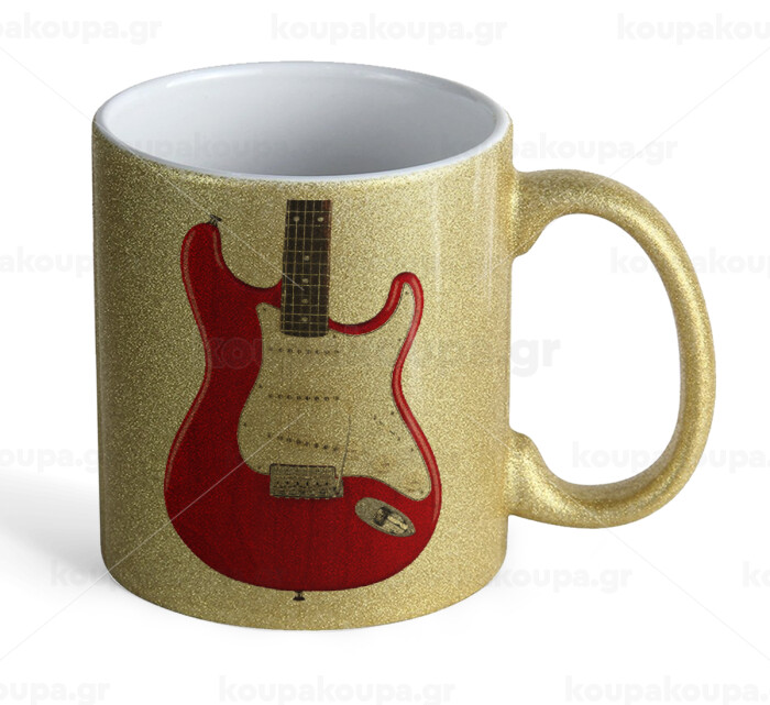 Guitar stratocaster, Κούπα Χρυσή Glitter που γυαλίζει, κεραμική, 330ml