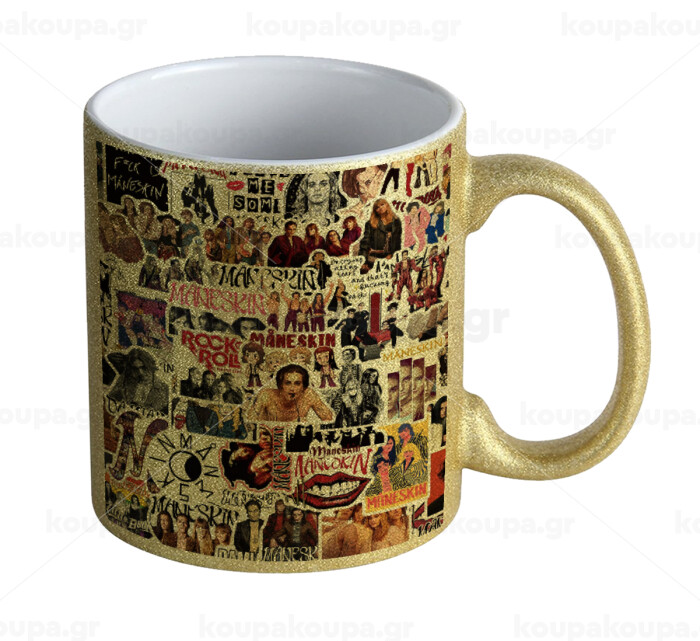 Maneskin stickers, Κούπα Χρυσή Glitter που γυαλίζει, κεραμική, 330ml