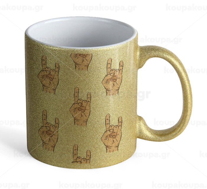 Rock hands, Κούπα Χρυσή Glitter που γυαλίζει, κεραμική, 330ml