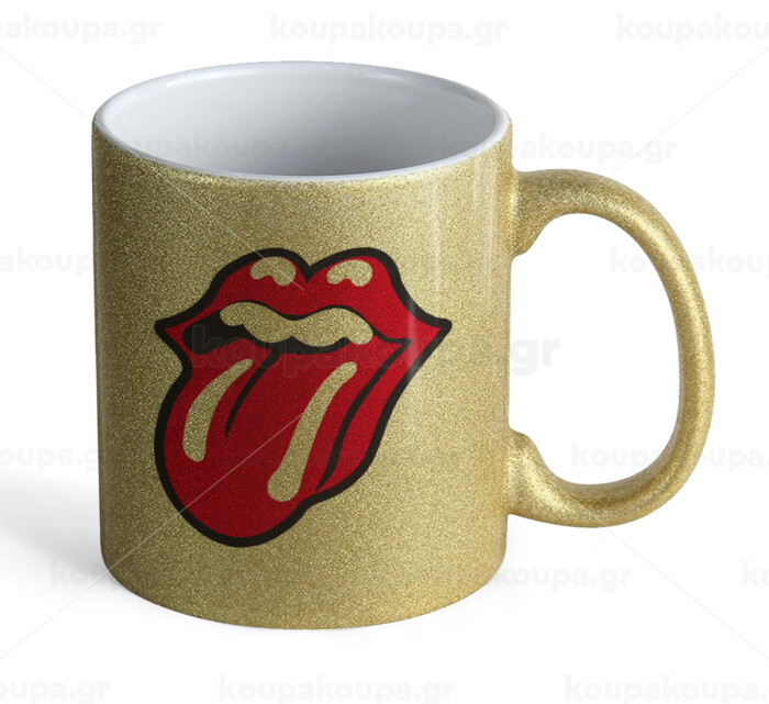 Rolling Stones Kiss, Κούπα Χρυσή Glitter που γυαλίζει, κεραμική, 330ml