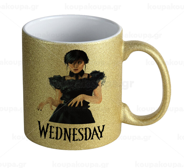 Wednesday Adams, dance with hands, Κούπα Χρυσή Glitter που γυαλίζει, κεραμική, 330ml