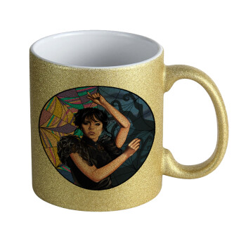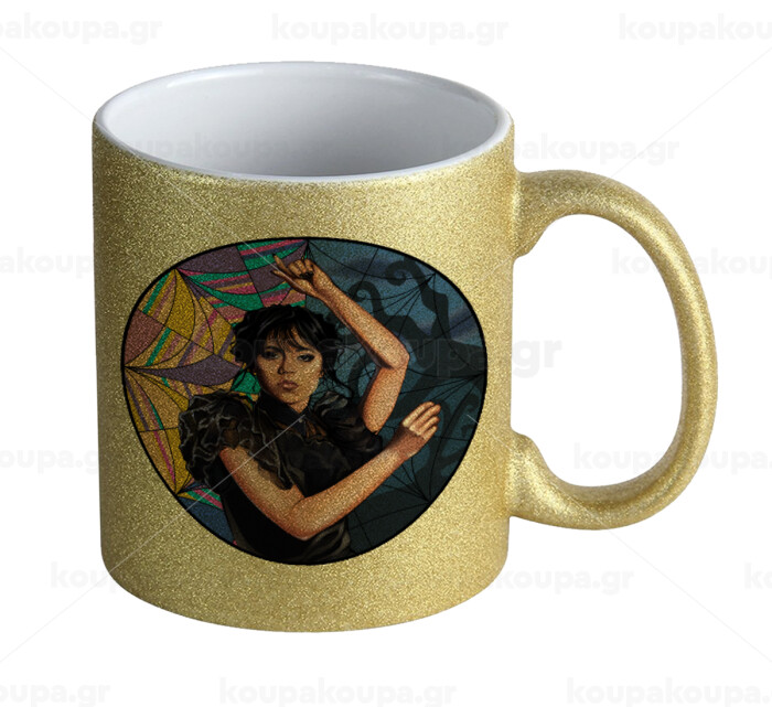 Wednesday dance, Κούπα Χρυσή Glitter που γυαλίζει, κεραμική, 330ml