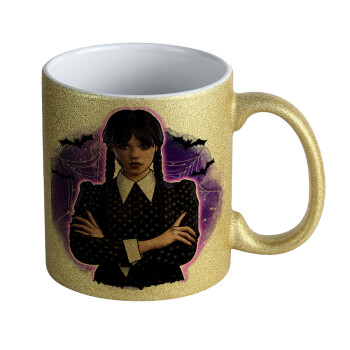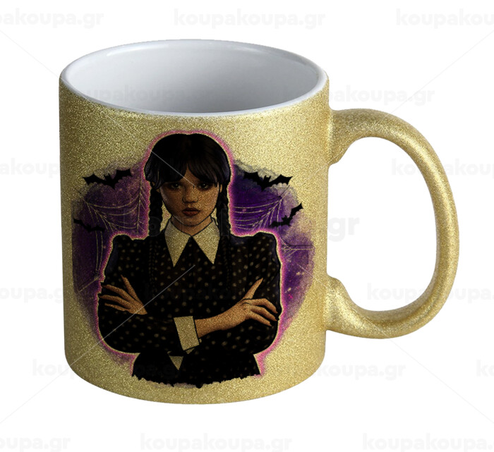 Wednesday moonlight, Κούπα Χρυσή Glitter που γυαλίζει, κεραμική, 330ml