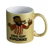 Ροντινέι, "ΠΟΛΥ ΚΟΥΡΑΣΜΕΝΟΣ", Κούπα Χρυσή Glitter που γυαλίζει, κεραμική, 330ml