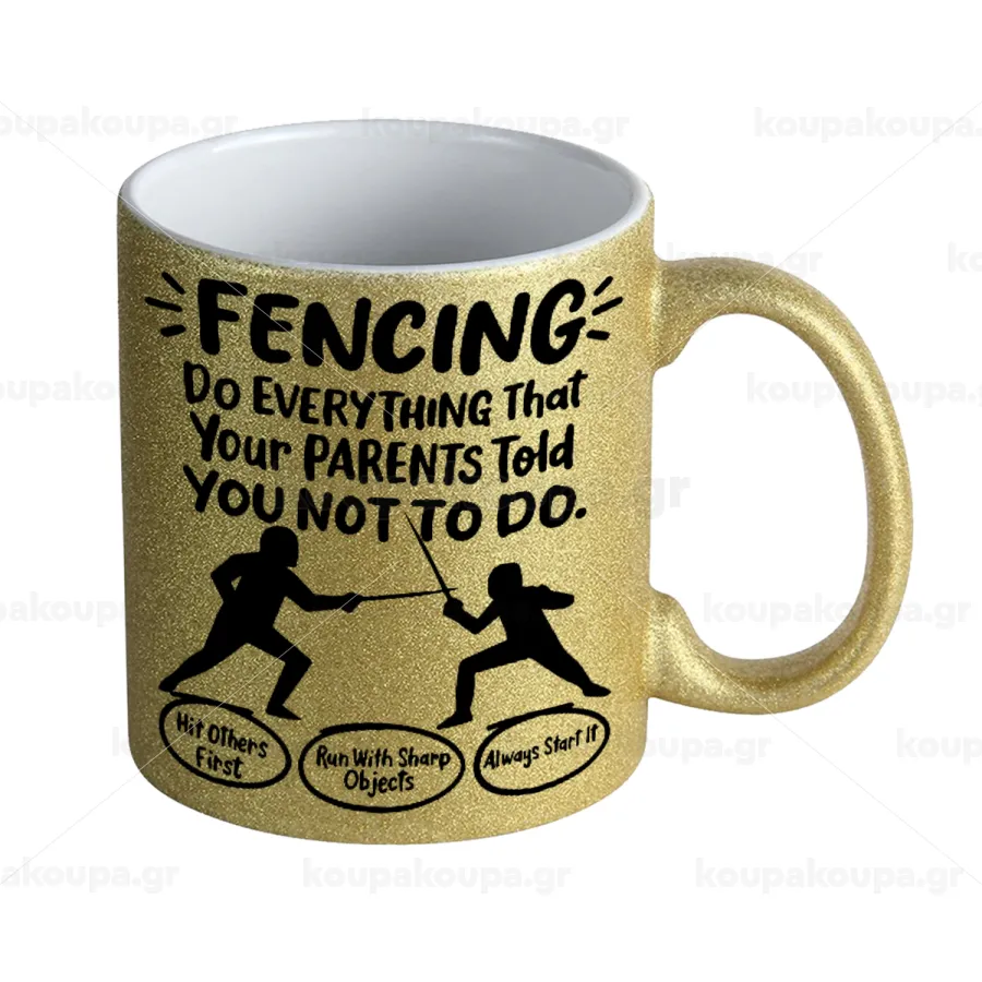 Fencing, do everything that your parents told you not to do., Κούπα Χρυσή Glitter που γυαλίζει, κεραμική, 330ml