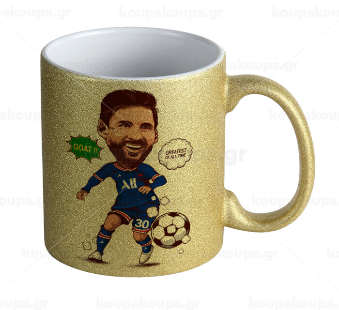 Lionel Messi drawing, Κούπα Χρυσή Glitter που γυαλίζει, κεραμική, 330ml