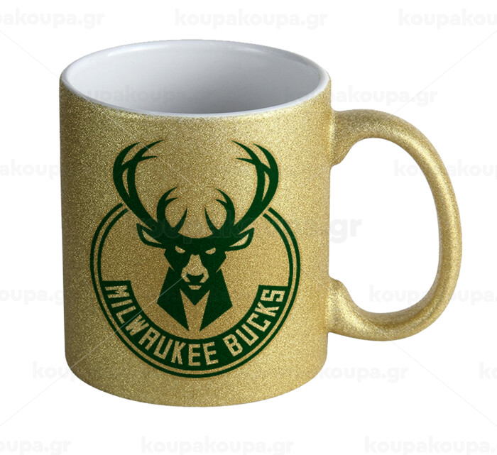 Milwaukee bucks, Κούπα Χρυσή Glitter που γυαλίζει, κεραμική, 330ml