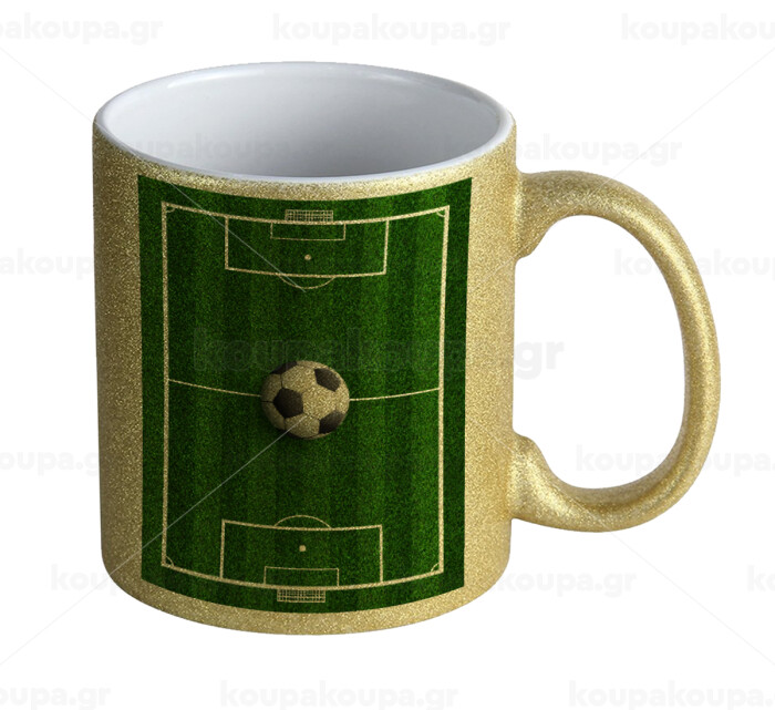 Soccer field, Γήπεδο ποδοσφαίρου, Κούπα Χρυσή Glitter που γυαλίζει, κεραμική, 330ml