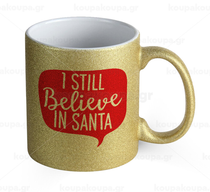 Ι still believe in santa, Κούπα Χρυσή Glitter που γυαλίζει, κεραμική, 330ml