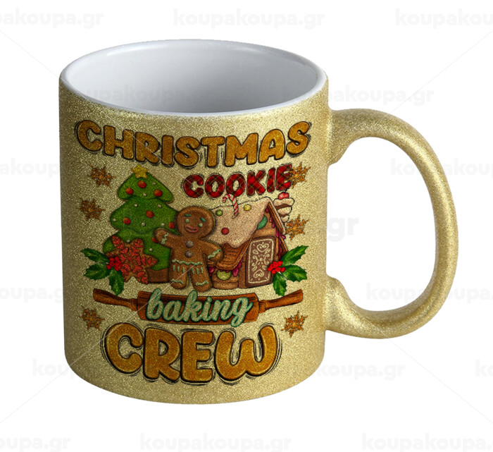 Christmas Cookie Baking Crew, Κούπα Χρυσή Glitter που γυαλίζει, κεραμική, 330ml
