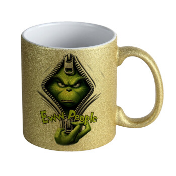 Grinch, eww people, Κούπα Χρυσή Glitter που γυαλίζει, κεραμική, 330ml