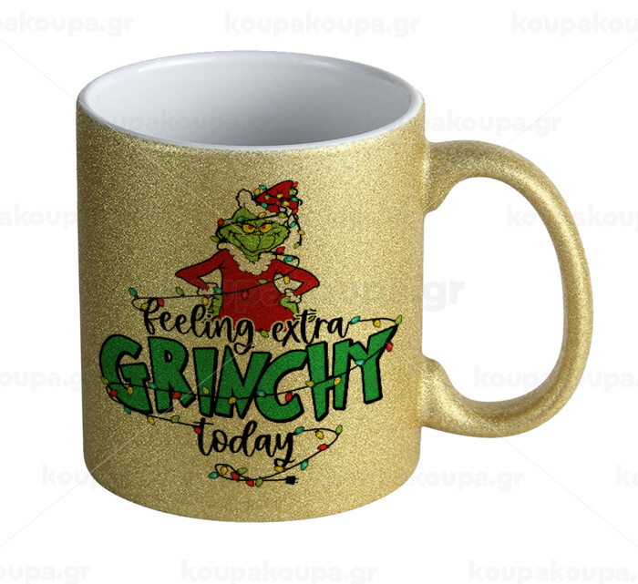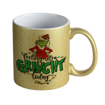 Grinch Feeling Extra Grinchy Today, Κούπα Χρυσή Glitter που γυαλίζει, κεραμική, 330ml
