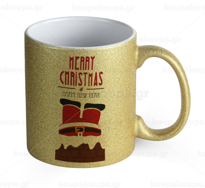 Merry christmas chimney, Κούπα Χρυσή Glitter που γυαλίζει, κεραμική, 330ml