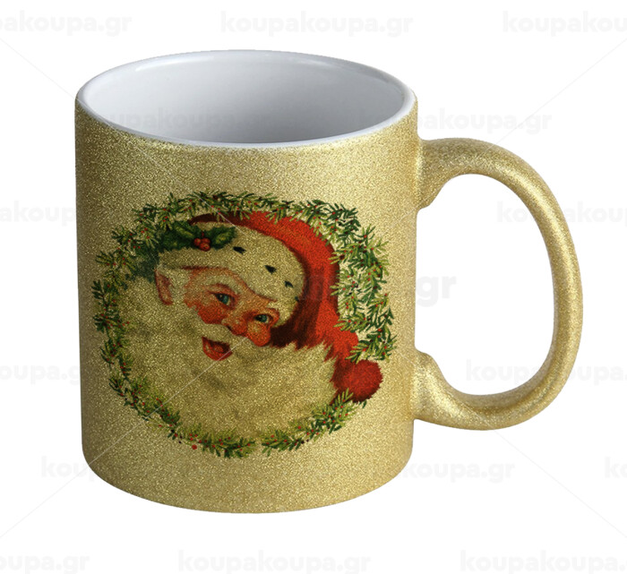 Santa Claus, Κούπα Χρυσή Glitter που γυαλίζει, κεραμική, 330ml