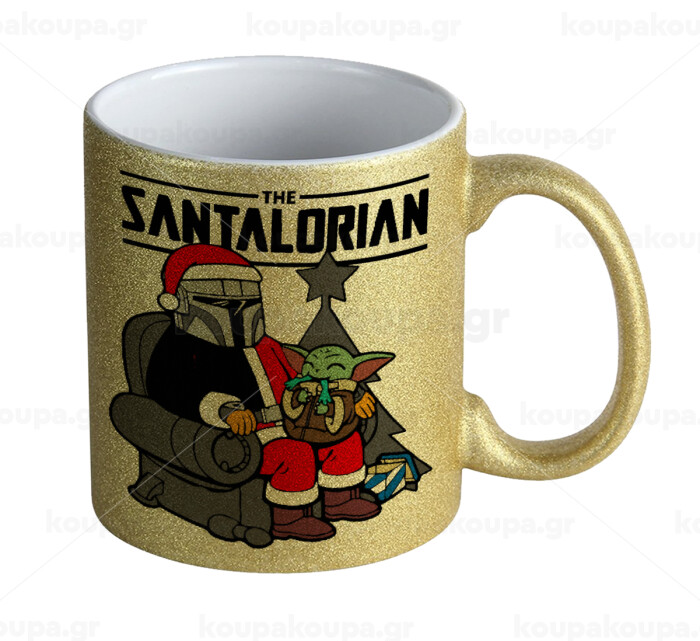 Star Wars Santalorian, Κούπα Χρυσή Glitter που γυαλίζει, κεραμική, 330ml