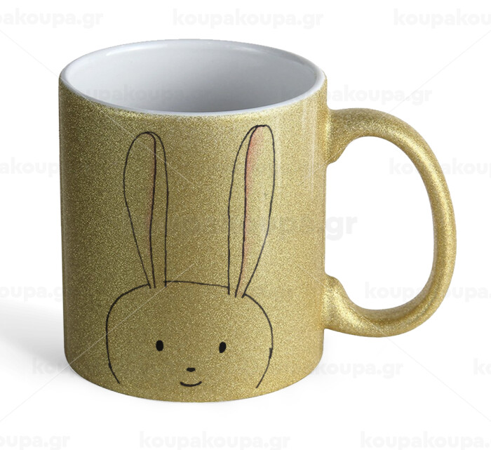 Ο λαγός του πάσχα, Κούπα Χρυσή Glitter που γυαλίζει, κεραμική, 330ml