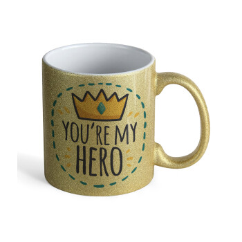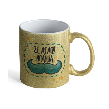 Κούπα Χρυσή Glitter που γυαλίζει, κεραμική, 330ml με θέμα Η ημέρα του πατέρα / άντρα