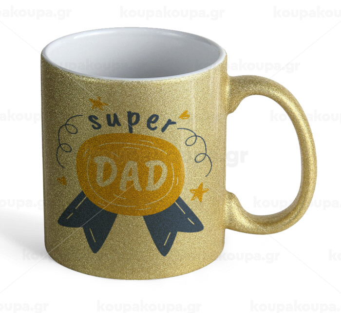 Μπαμπά είσαι για μετάλλιο, Κούπα Χρυσή Glitter που γυαλίζει, κεραμική, 330ml
