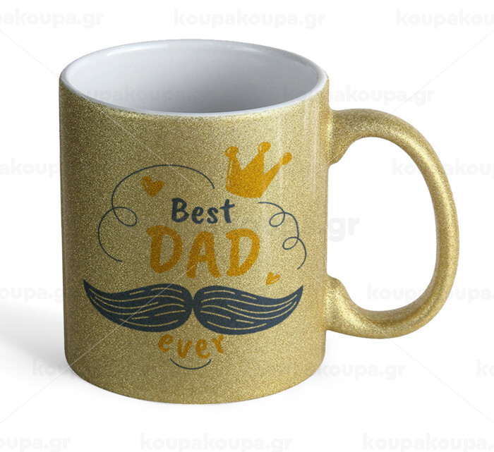 Best dad ever ο Βασιλιάς, Κούπα Χρυσή Glitter που γυαλίζει, κεραμική, 330ml